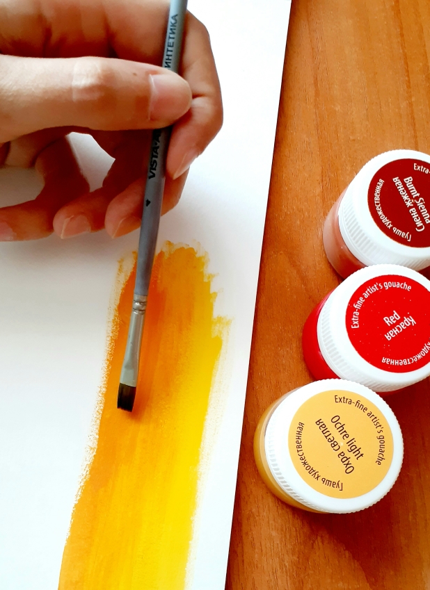 Скачать файл 2 Фото-иллюстрация: Примеры видов гуаши и кистейФайл 3: Фото-иллюстрация: Пример выполнения градиентной заливки
